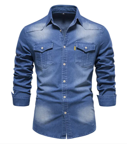 Denim Men's Casual Solid Color Long Sleeve Shirt – Classic Style with a Modern Fit
