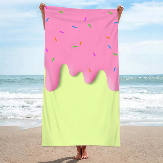 Double-sided Smiling Face Love Ice Cream Printing Beach Towel – Cotton Versatile Towel for Beach, Yoga & Decor