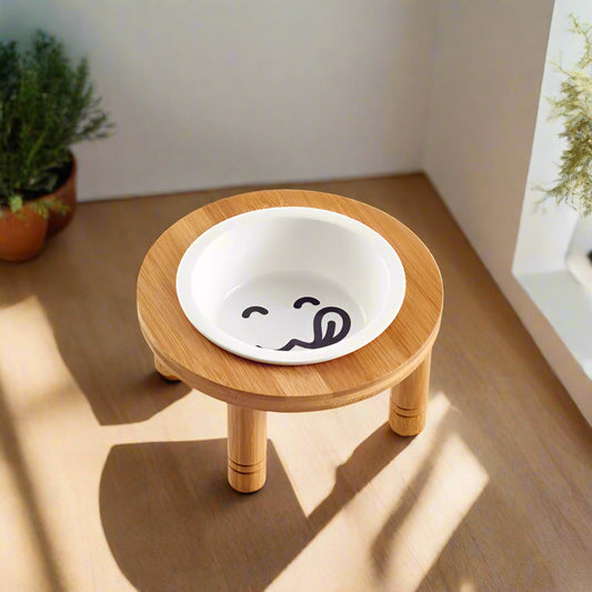 Elevated Bamboo & Ceramic Pet Bowl – Ergonomic Design for Cats and Dogs