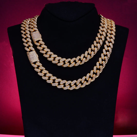 Flip Buckle Iced Cuban Link Chain Necklace – Gold-Plated Statement Piece