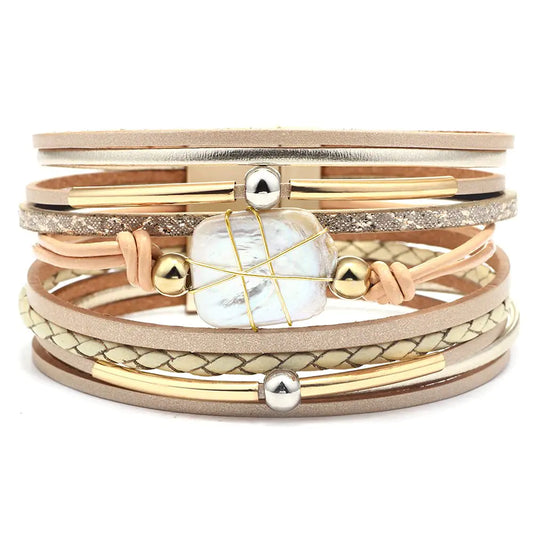 Fesciory Bracelet for Women – Boho Leather Wrap Multi-Layer Pearl Crystal Bracelet Bangle Jewelry