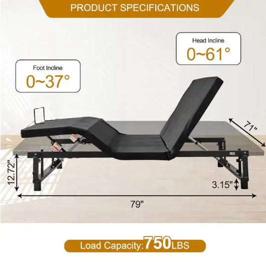 Adjustable Bed Base Frame Head and Foot Incline – King Size | Zero Gravity Silent Motor with Wireless Remote, 4 USB Ports & Under-Bed Nightlight