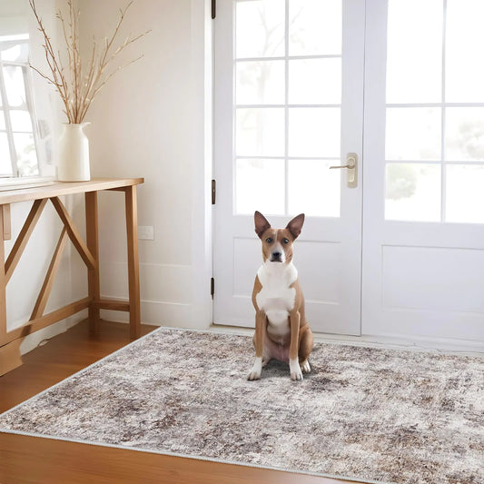 Abstract 3x5 Washable Rug – Brick Gray Distressed Modern Area Rug