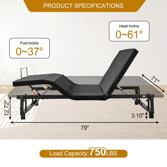 Adjustable Bed Base Frame – King Size | Head and Foot Incline, Quiet Motor, Zero Gravity, 4 USB Ports & Under-Bed Nightlight