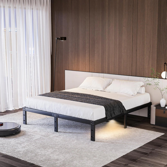7-Inch Low Bed Frame King with LED Night Light – Metal Platform, No Box Spring Needed, Easy Assembly, Noise-Free, Black