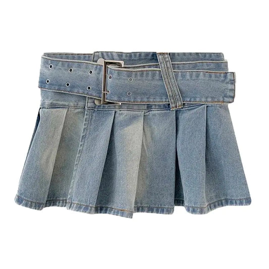 Low Rise Belted Denim Mini Skirt – Effortless Chic with a Modern Edge