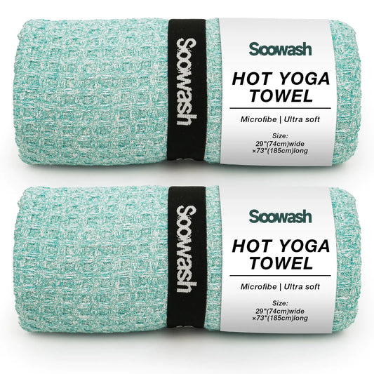 Non-Slip Waffle Hot Yoga Mat Towel – 2 Pack | Ultra-Absorbent Suede Microfiber Towels for Bikram, Pilates, Yoga – 28" x 72" (Teal)