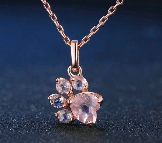 Paw Pendant Necklace in S925 Silver with Gemstones – A Playful Touch of Elegance