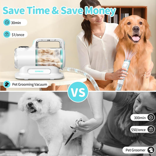 SIMWAL 6-in-1 Pet Grooming Vacuum Kit – Quiet 11KPa Suction System