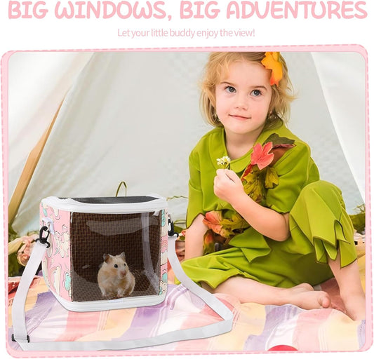 Small Pet Carrier Bag with Water Bottle – Travel Portable Small Animal Carrier Sling Pouch with Clear Window (Pink)