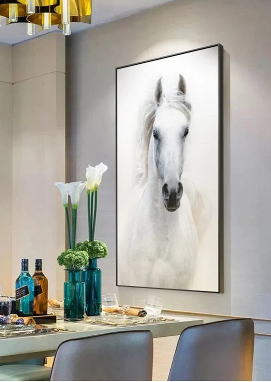 White Horse Abstract Canvas – Modern Frameless Wall Art with Waterproof Finish (Multiple Sizes Available)