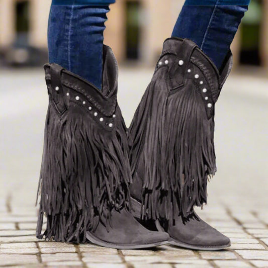 Western Fringe Mid-Calf Boots for Women – Timeless Charm with a Modern Twist