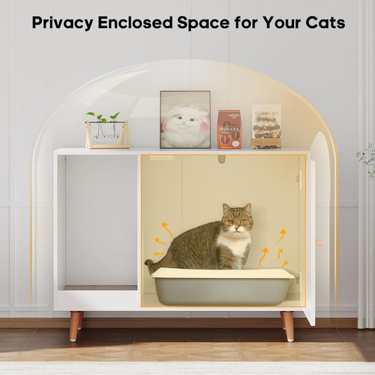 White Cat Litter Box Enclosure – Hidden Wooden Cabinet