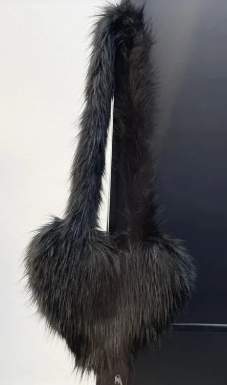 Women Heart Shape Faux Fur Fleece Shoulder Bag