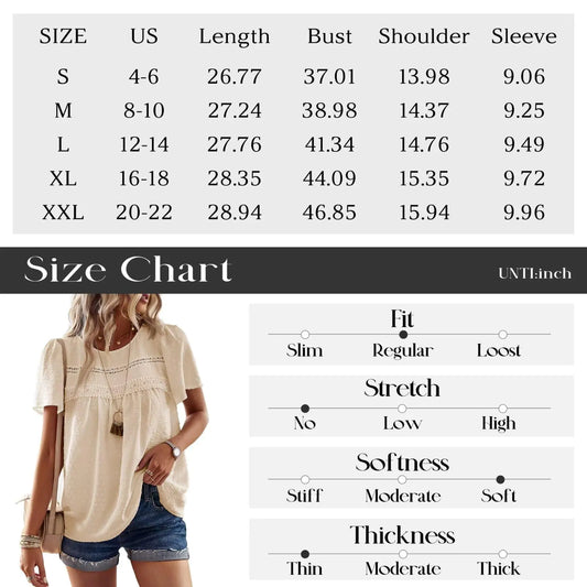 Womens Summer Tops Crewneck Short Sleeve Shirts Casual Chiffon Blouses Flowy Lace Hem Boho Clothing Trendy 2024 XX-Large Apricot