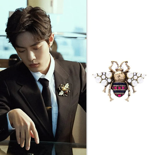 Bee Pearl Rhinestone Brooch
