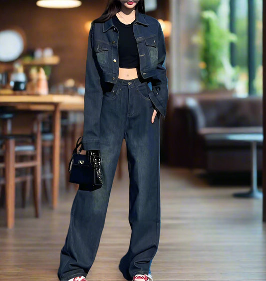 Denim Coat Jacket & Mopping Wide Leg Jeans – Effortless Style for Everyday Wear