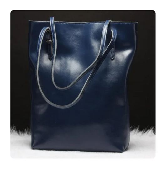 Cowhide Leather Shoulder Bag – Elegant Large-Capacity Tote with Detailed Stitching and Timeless Design
