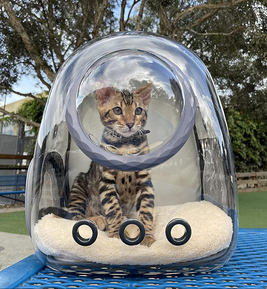 Bubble Cat Carrier Backpack – Transparent Space Capsule Travel Bag for Cats & Small Pets (Black)
