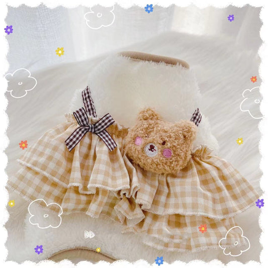 Khaki Bow Student Skirt for Dogs & Cats – Stylish Polyester Pet Outfit (XS–XL)