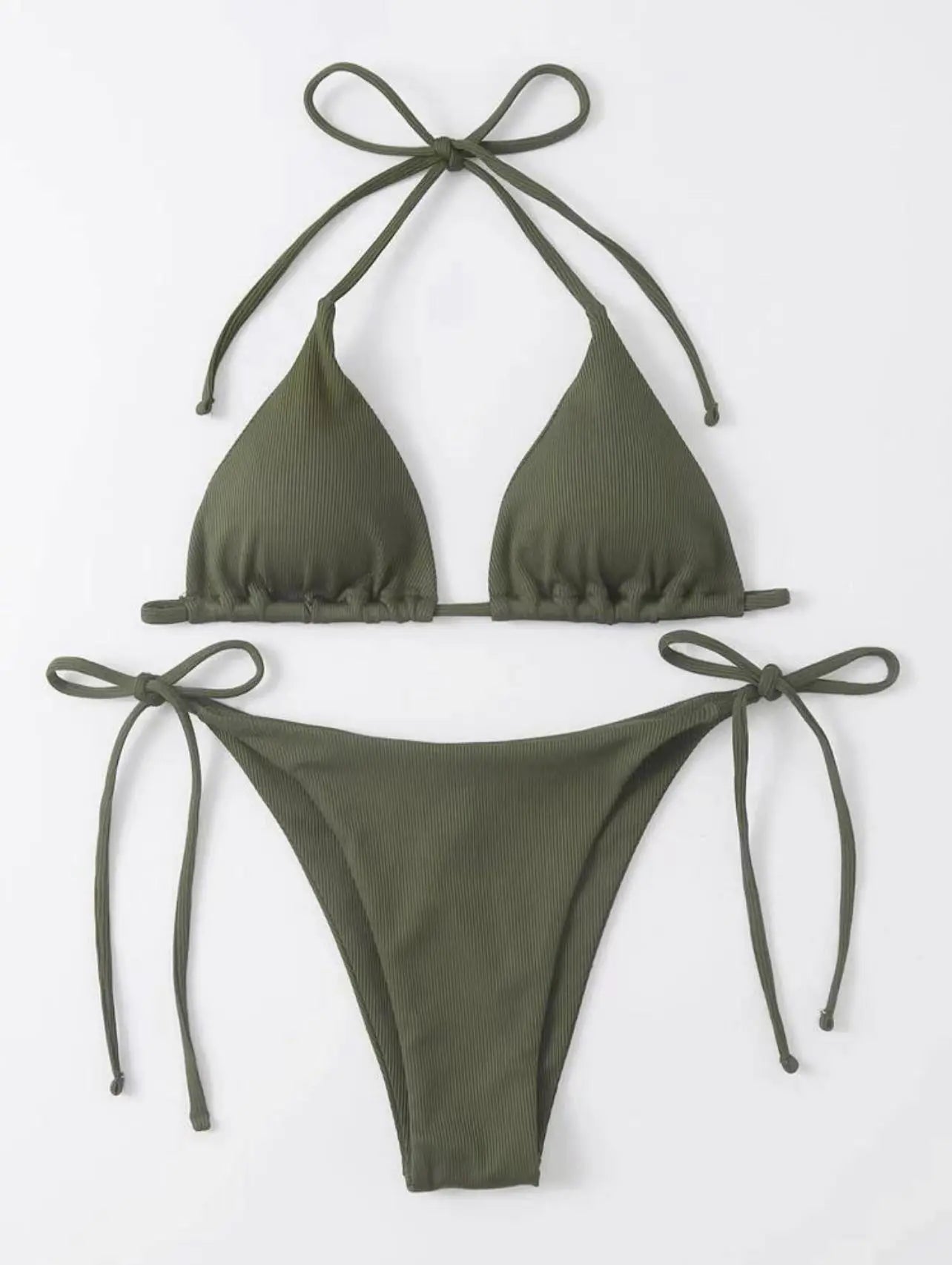 Make waves in our ribbed three-piece bikini set. Lightweight, comfortable, and available in 9 colors and sizes S–L. A must-have for summer.
