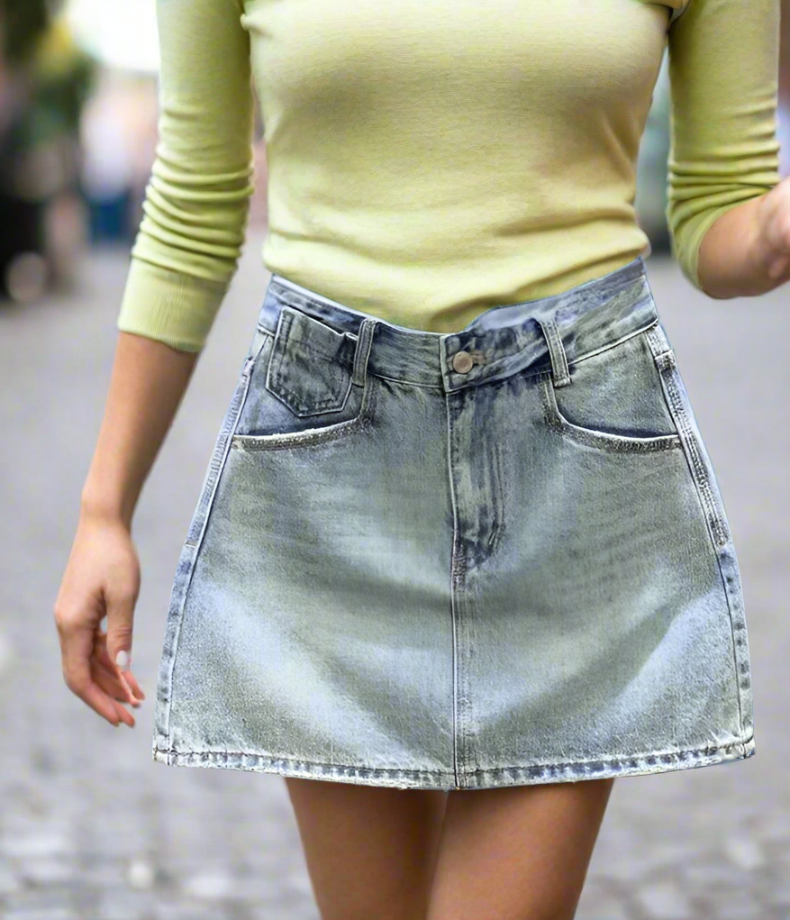 Perfect for everything from casual outings to sophisticated workwear, this A-line denim short skirt is a must-have staple that effortlessly adapts to any occasion.