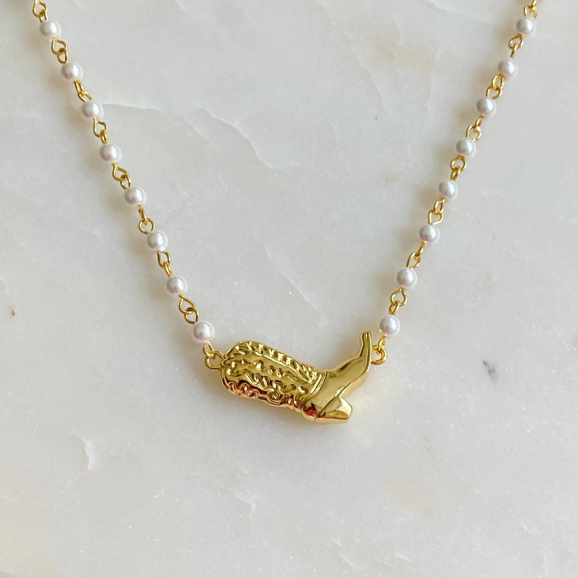 Cowgirl Boot Pearl Chain Necklace – A Bold Statement of Western Elegance