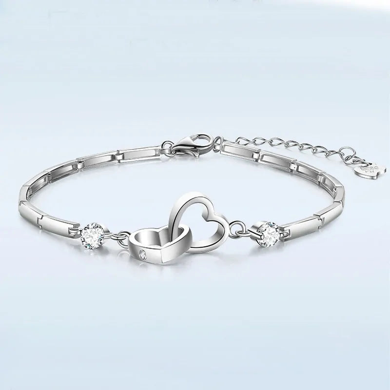 Delight your loved one with the Cubic Zircon Double Heart Bracelet, a perfect symbol of everlasting love. The shimmering cubic zirconia stones catch the light beautifully, while the double heart design signifies the unending connection you share. This bracelet is more than just an accessory; it's a token of your enduring affection and commitment.