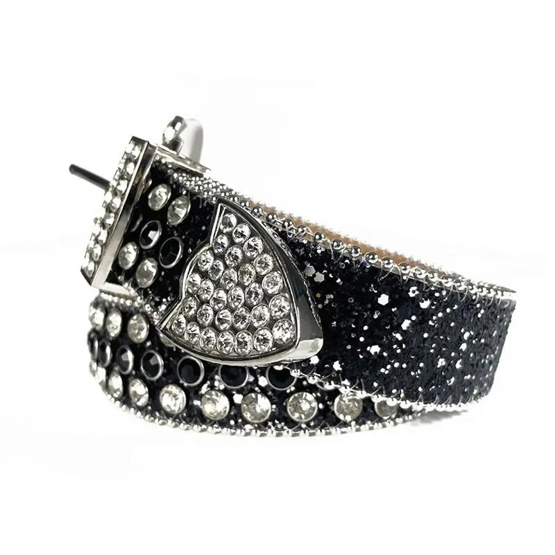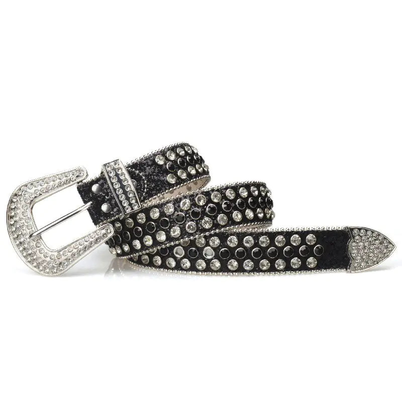 Add a bold touch of glamour and sophistication to your wardrobe with the Diamond Studded Belt. Featuring a raised western-inspired design adorned with dazzling diamond rhinestones, this luxurious belt perfectly combines edgy style with timeless elegance.