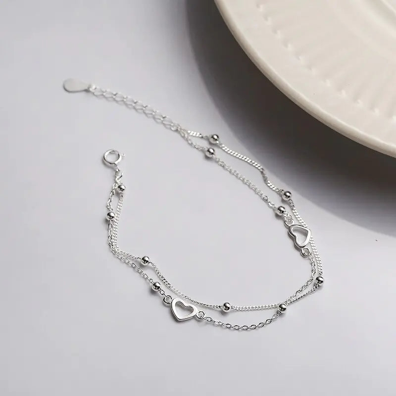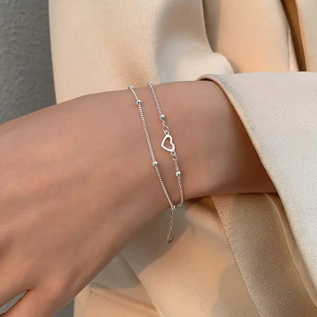 Elevate Your Style with Double Layer Love Heart Charm Bracelets