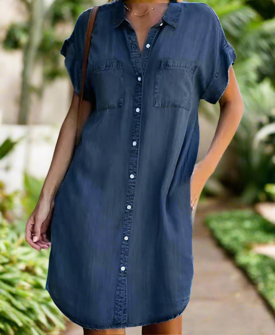 Upgrade your casual wardrobe with this versatile and chic denim dress, designed for both comfort and effortless style. Featuring a flattering A-line silhouette, this mid-length dress ensures a relaxed yet polished look, perfect for any casual occasion.