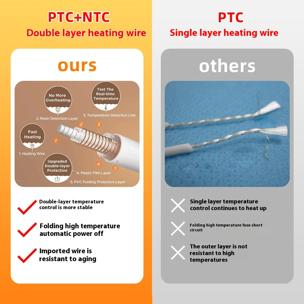 Technology: PTC+NTC double-layer heating wire (overheat protection)