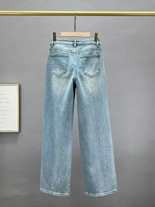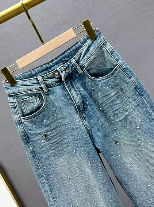 Upgrade your denim collection with our High-Waist Rhinestone Straight-Leg Jeans, designed to offer both style and versatility. These jeans feature a flattering high-rise fit, a slimming straight-leg cut, and a subtle rhinestone pendant detail that adds a touch of elegance. Crafted from premium blue denim with a high-quality cotton composition, they provide a soft, breathable feel—perfect for staying comfortable all day.