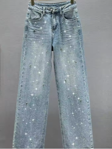 High-Waist Rhinestone Straight-Leg Jeans – Effortless Elegance Meets Everyday Comfort