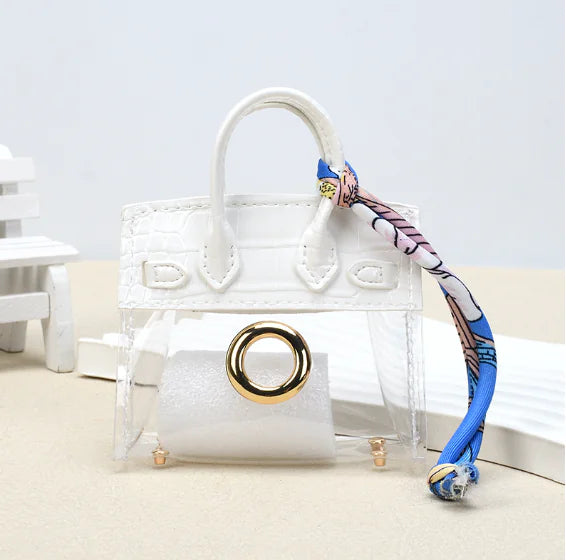 Add a touch of style and practicality to your everyday essentials with our Key Cover Handbag w/ Holes, a chic mini transparent bag that blends fashion with function. Crafted from high-quality microfiber leather with a clear body, this mini handbag design is both durable and elegant, making it an eye-catching accessory you’ll love carrying.