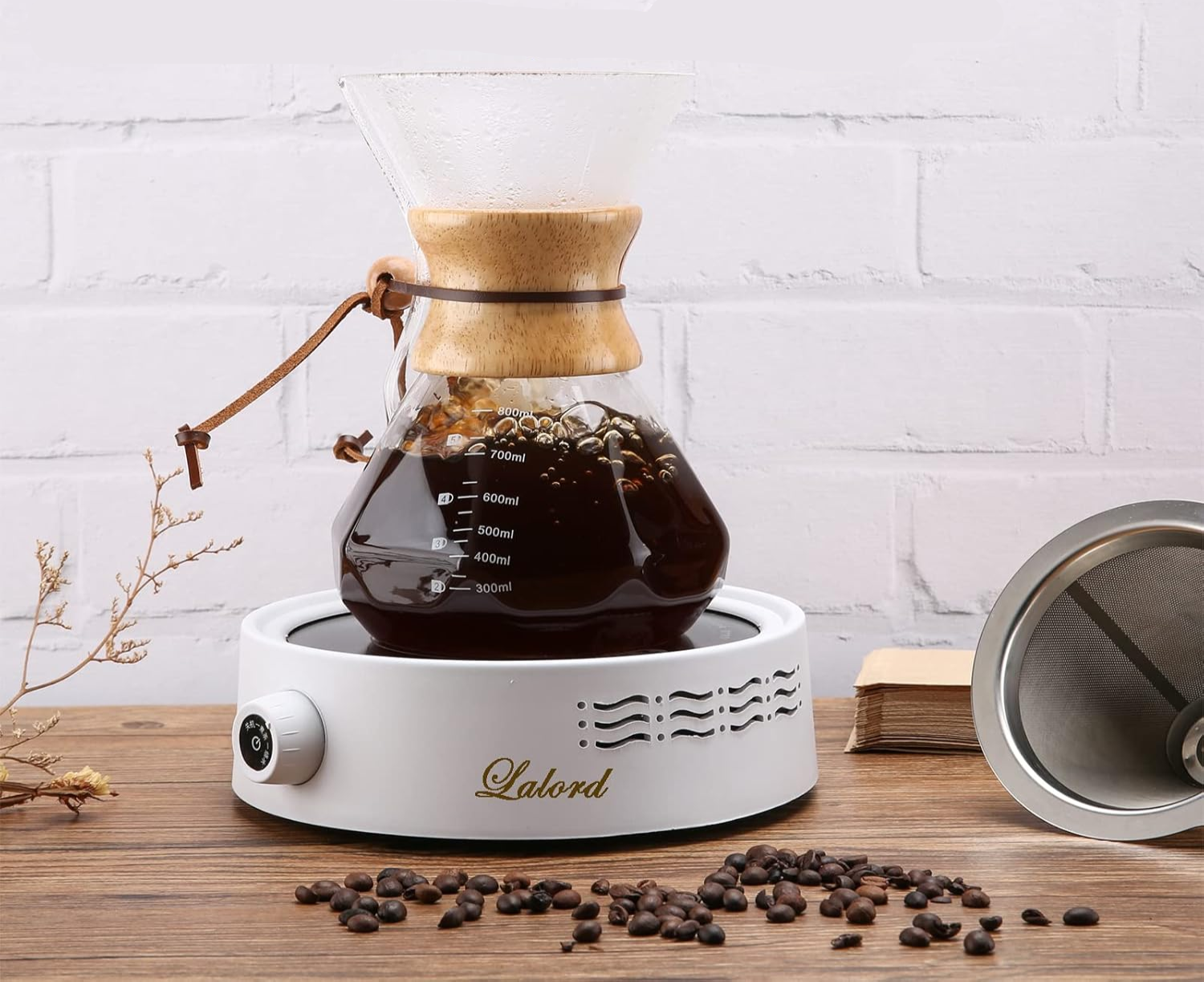 Brew 3–4 cups of smooth, flavorful coffee with this 600ml pour-over coffee maker. Features borosilicate glass, a stainless steel reusable filter, and elegant design for everyday use.