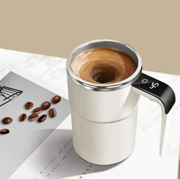Enjoy hands-free mixing with the Electric Coffee Mug. Featuring magnetic self-stirring, USB rechargeability, and a temperature display, this 380ml smart mug is perfect for coffee lovers on the move.