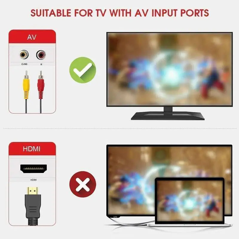 Compatibility: Requires TV/monitor with AV input. For HDMI-only TVs, use an RCA-to-HDMI adapter (sold separately).