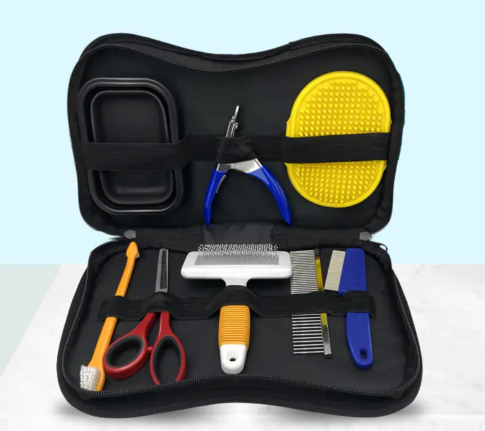 From trimming and brushing to tooth care and nail clipping, this kit includes all the essentials: toothbrush, scissors, flea comb, steel wire comb, massage brush, nail clipper, and even a collapsible food bowl. It’s perfect for dogs of all sizes and breeds.