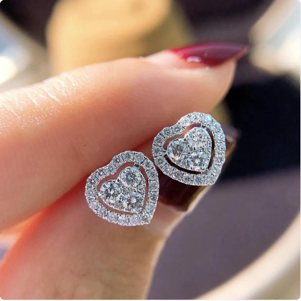 Rhinestone Heart-Shaped Love Stud Earrings for Women