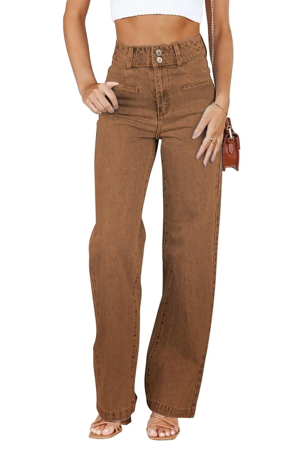 Sidefeel Women's Jeans High Waisted Straight Leg Stretchy Jeans Trendy Welt Pockets Loose Wide Leg Ankle Denim Pants 6 Brown