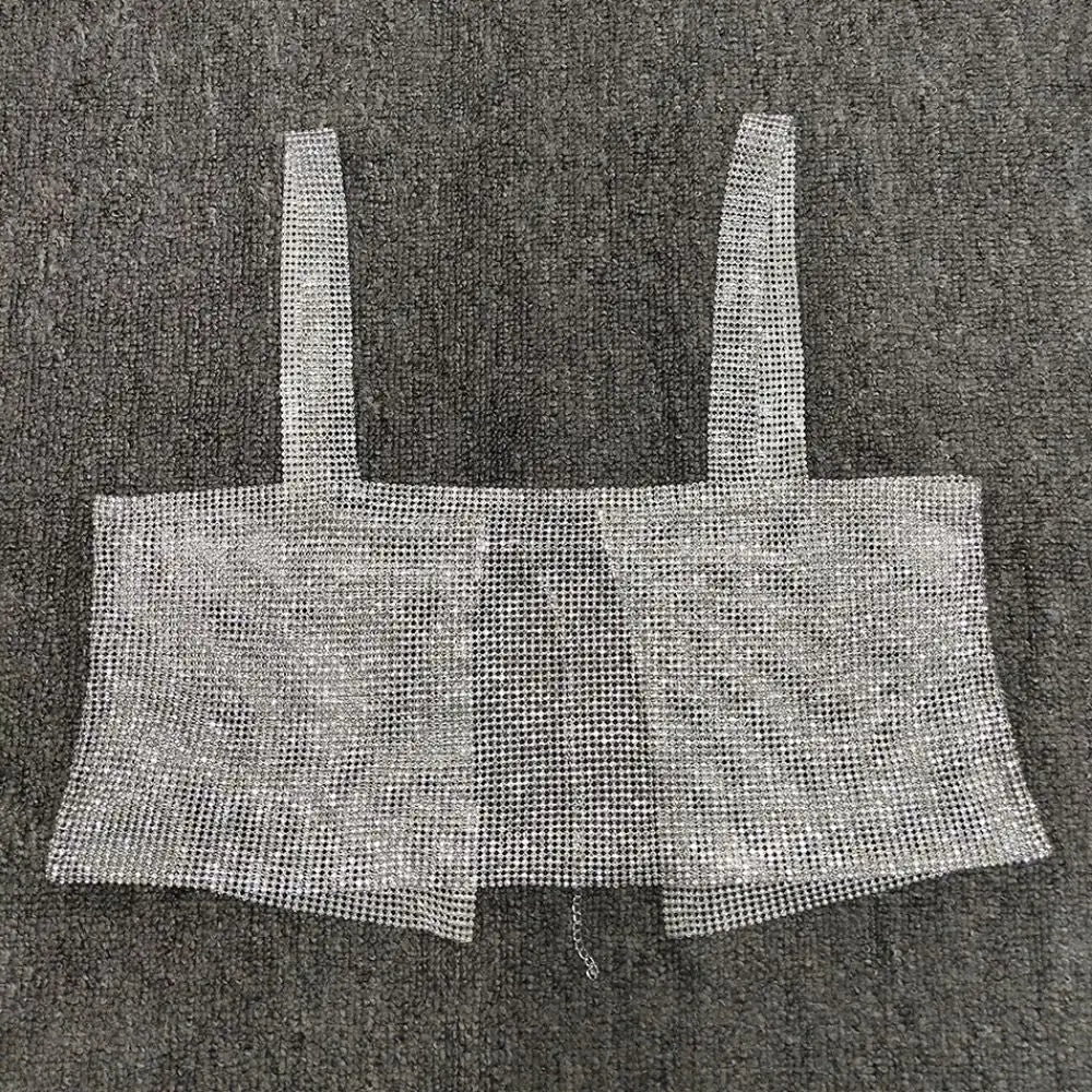 Turn heads and shine effortlessly with the Rhinestone Mesh Crop Top. This dazzling statement piece is adorned with shimmering rhinestones, adding a touch of glamour to any outfit. Whether you're dressing up for a special occasion or adding sparkle to your everyday style, this top is the perfect blend of luxury and sophistication.