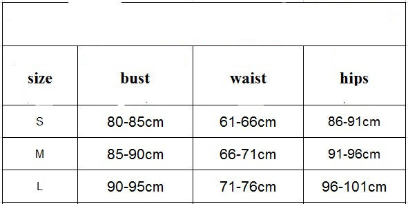Size Options (Bust/Waist/Hip in inches)
