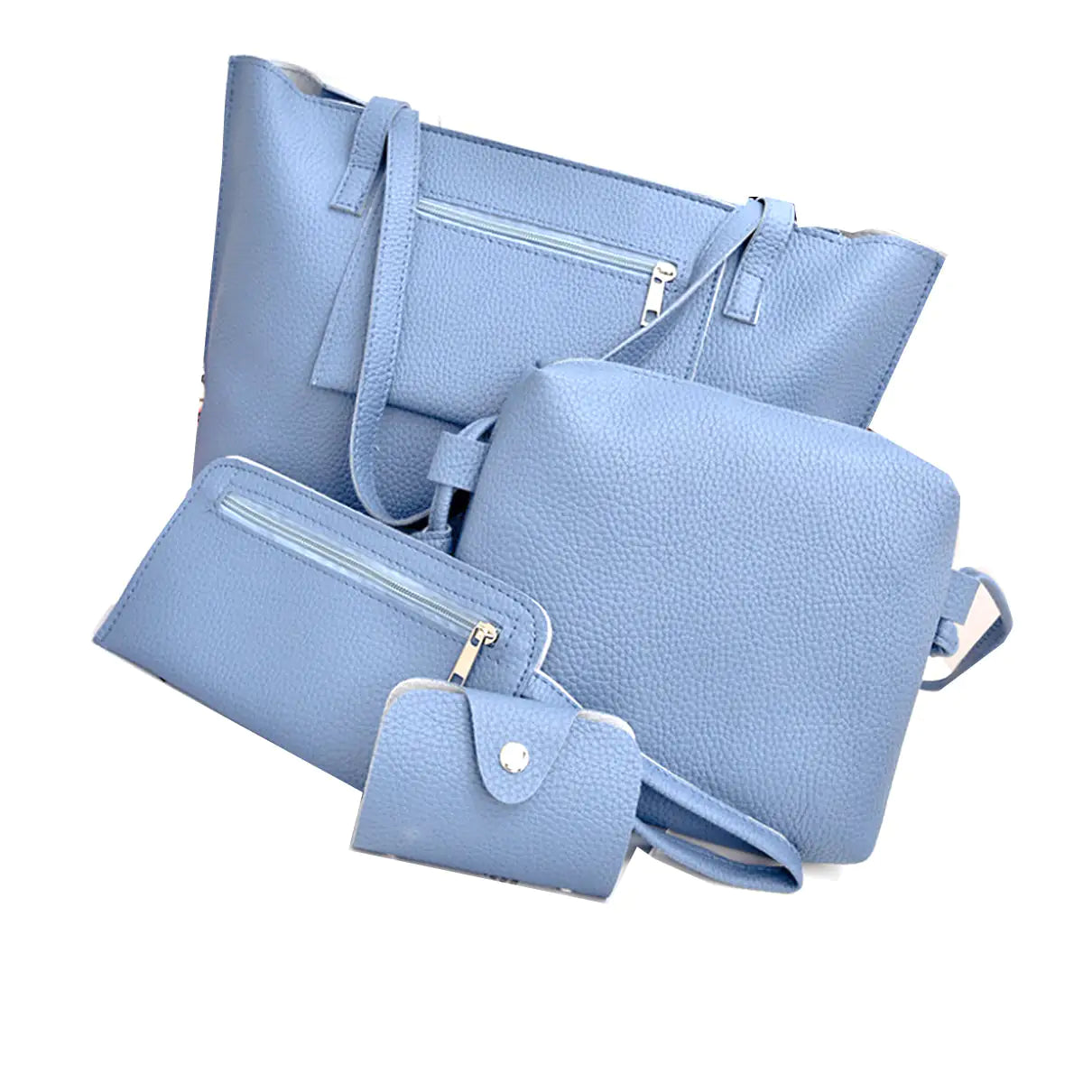 4-in-1 vegan leather handbag set with tote, crossbody, wristlet, and cardholder. Stylish, functional, and perfect for every occasion.