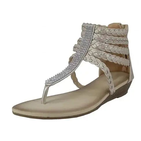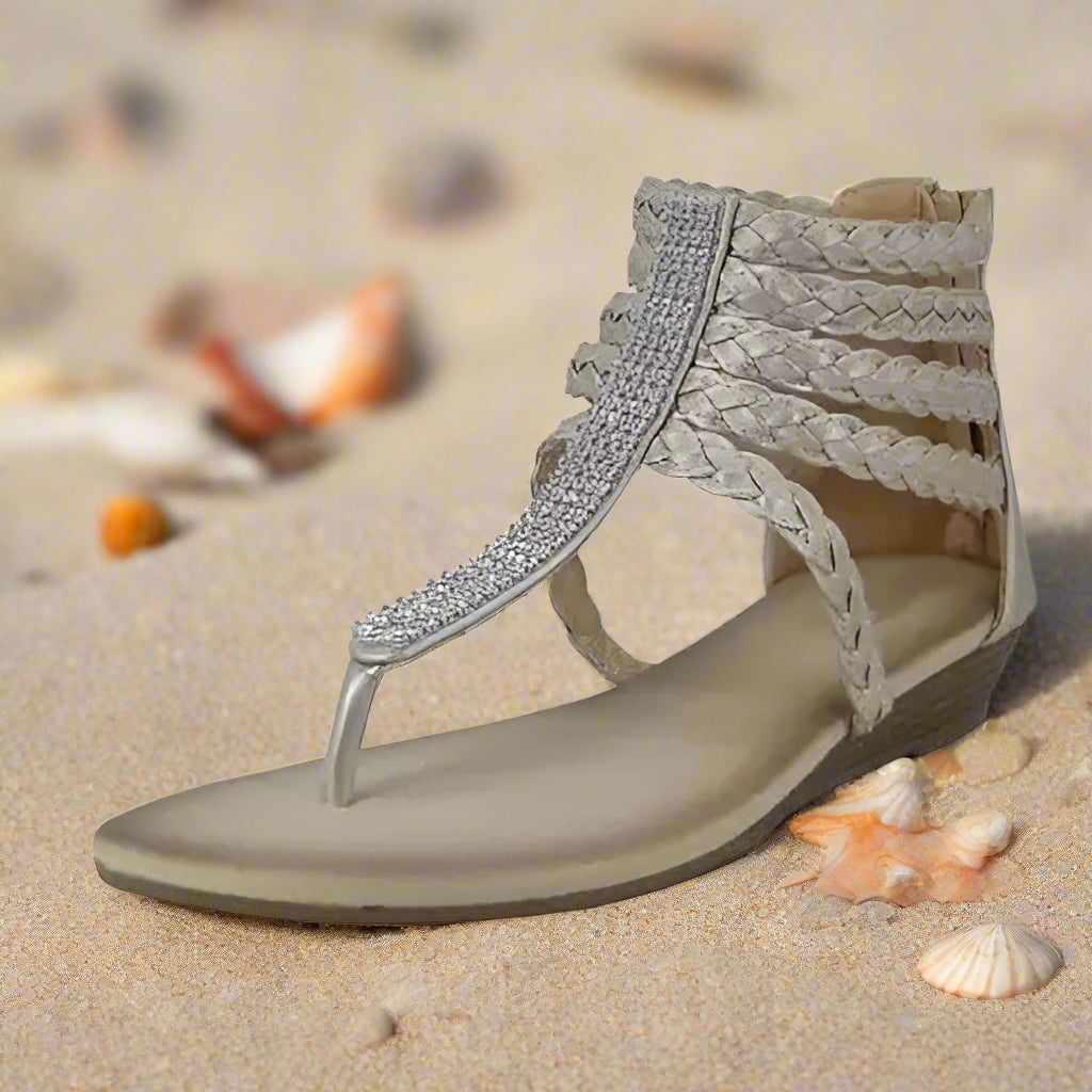 For the true Gladiator Sandal lover, the Ivory Braided Rhinestone Gladiator is the ultimate statement piece. With its intricate braided straps, dazzling rhinestones, and cushioned sole, this sandal effortlessly blends luxury, comfort, and bold style—ensuring you never look at an ordinary sandal the same way again!