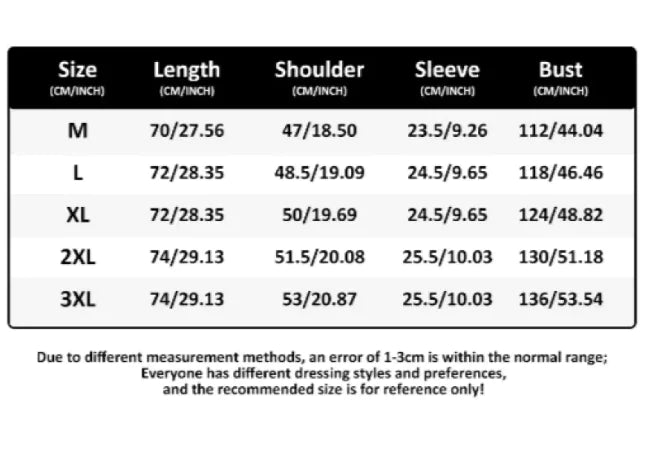 Available Sizes: S, M, L, XL, XXL (Asian sizes run 1–2 sizes smaller; size up if unsure)