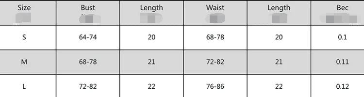 Size | Under Bust (cm/inch) | Bra Length (cm/inch) | Waist (cm/inch) | Panties Length (cm/inch) |