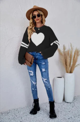 Embrace comfort and charm with this women’s long-sleeve sweater, crafted to blend warmth and style seamlessly. Featuring a delightful love-inspired pattern, this sweater is made from ultra-soft acrylic fabric that feels gentle against the skin. Its loose, relaxed fit makes it the perfect choice for effortless everyday wear, whether you're running errands or enjoying a laid-back evening at home.